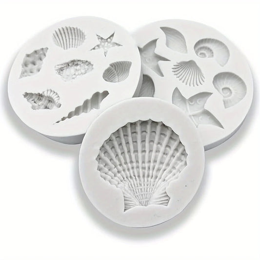 Acuan Silikon Bertema Lautan 3PCS – Keong, Starfish & Karang untuk Membakar & Kraf