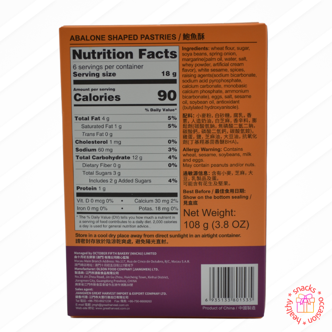 ✔ CNY October Fifth Abalone Cookies (108g) X 1 – Buttery and crisp with a rich, traditional taste.