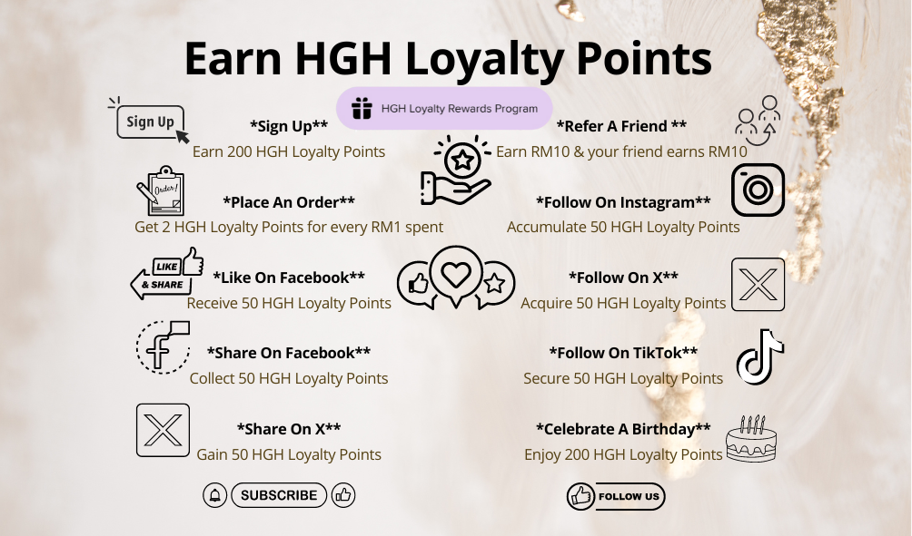 We're thrilled to have you join our exclusive community where every action brings you closer to exciting rewards. As a member of Healthy Gifts Hub (HGH) Loyalty Rewards Program, you'll unlock a world of perks through our HGH Loyalty Points system. Whether you're shopping, sharing with friends, or engaging with our brand, you'll earn points that can be redeemed for fantastic rewards.