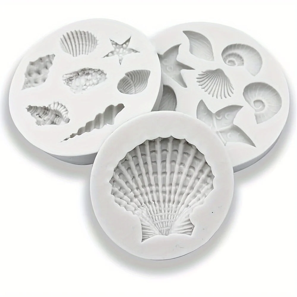 3PCS Ocean-Themed Silicone Molds – Conch, Starfish & Coral for Baking & Crafts
