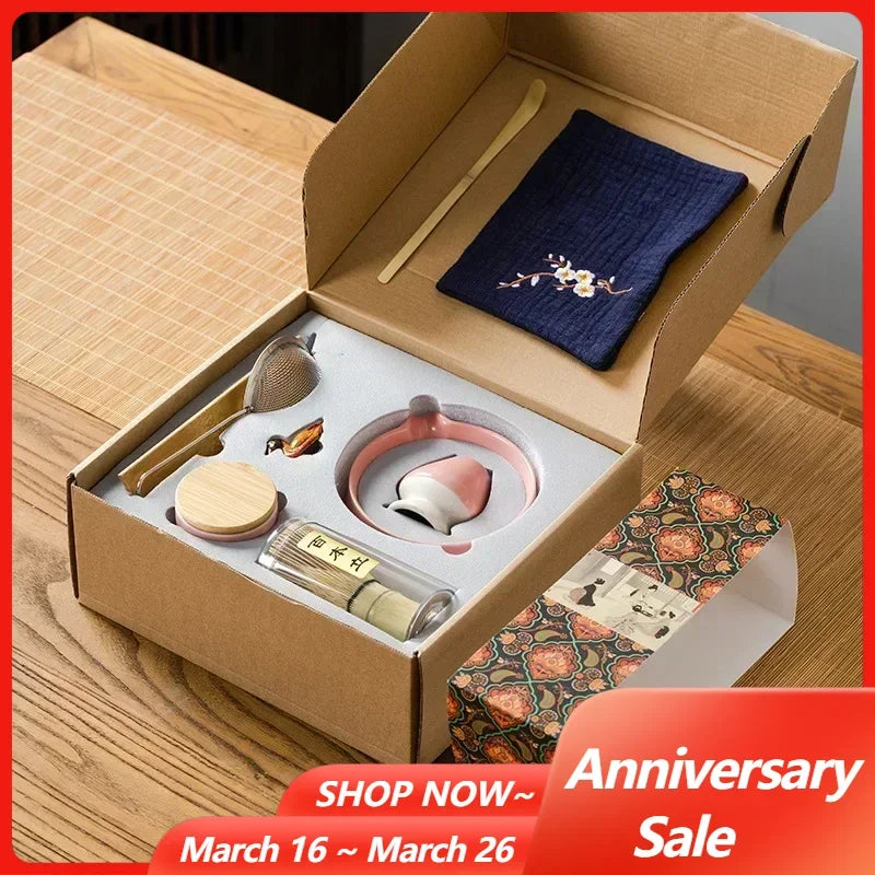 9PCS Japanese Matcha Set with Ceramic Bowl Bamboo Matcha Whisk and Tea Scoop for Tea Lovers Gifts Tea-Making Tools Accessories
