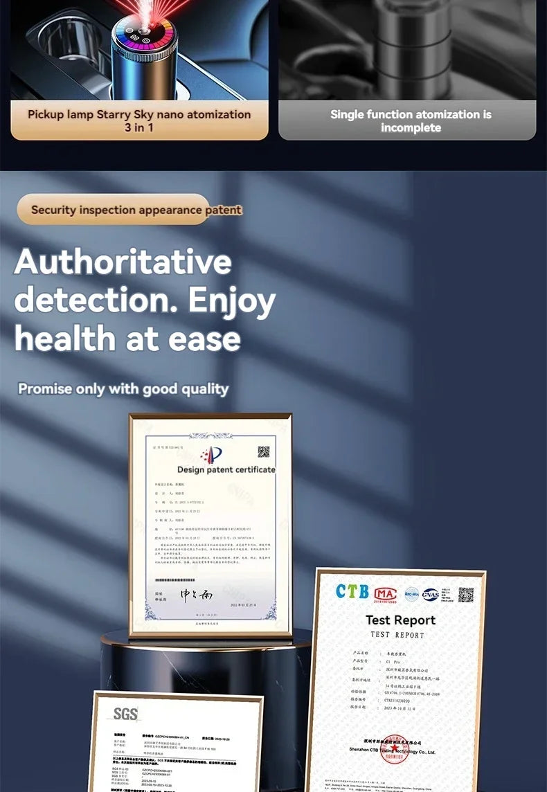 3.Effectively Freshen Car Air: The smart car air freshener diffuser uses ultrasonic atomization technology to spray out a fine fragrance mist. With the air-conditioning wind, the fragrant air circulates throughout the cabin, easily eliminating various odors. The 1 bottles of perfume provided are made from natural plant extracts. They have a refreshing fragrance that is not irritating and has no side effects on children and the elderly.