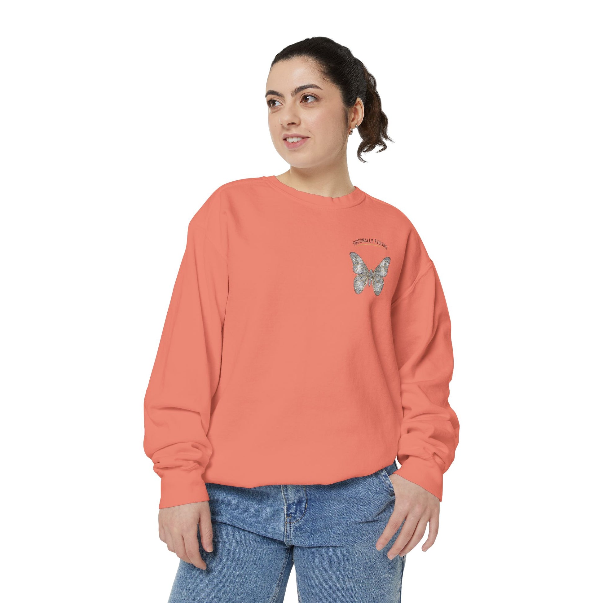 This unisex garment-dyed sweatshirt is the perfect blend of comfort and style. Made with a soft fabric blend of 80% cotton and 20% polyester, it feels luxurious against your skin while ensuring breathability. The relaxed fit makes it an ideal choice for everyday wear, whether lounging at home or heading out with friends. The unique butterfly embroidery on the front adds a touch of whimsy, while the bold, fiery message on the back makes a powerful statement. Perfect for individuals who appreciate creativity and individuality, this sweatshirt is an ideal gift for those looking to express their style on casual outings or cozy nights in. Suitable for various occasions such as birthdays, casual gatherings, or just as a well-deserved treat for yourself, it harmonizes with any laid-back lifestyle. Embrace warmth and positivity with this vibrant piece, which is perfect for autumn and spring days.